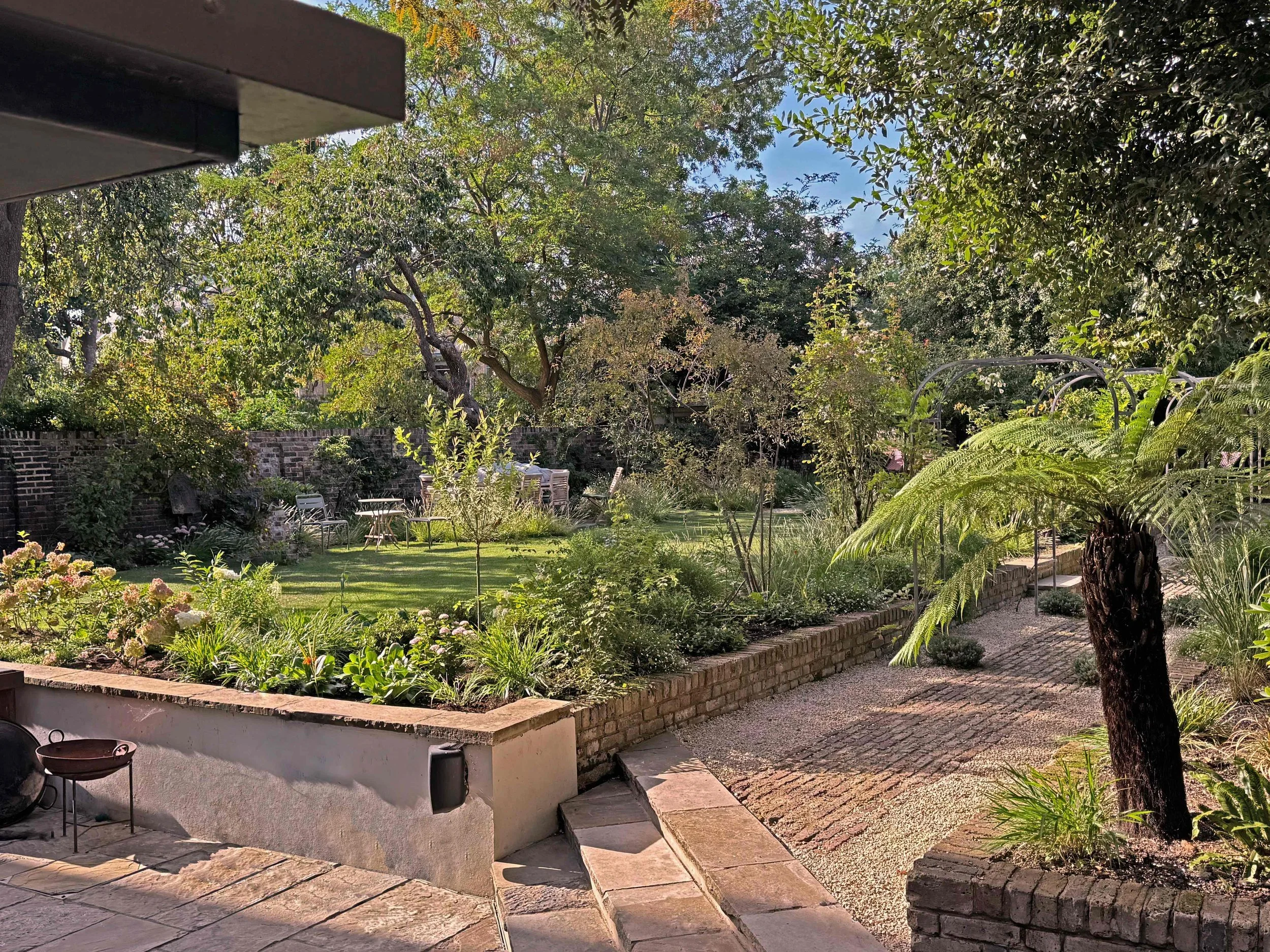 A young family underwent a major renovation of their Grade II listed Victorian home including a new addition with green roof. Before buying the home, the garden had been neglected for many years resulting in a wild landscape of brambles and neglected rose bushes.